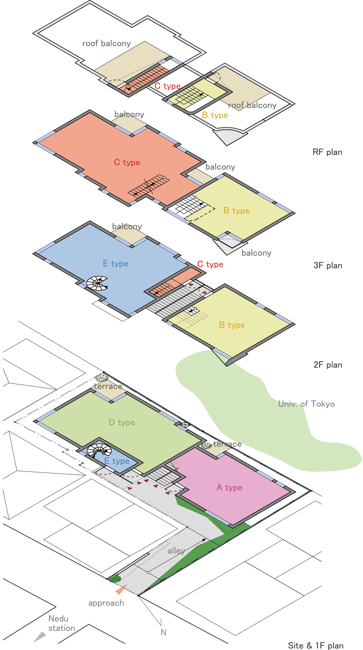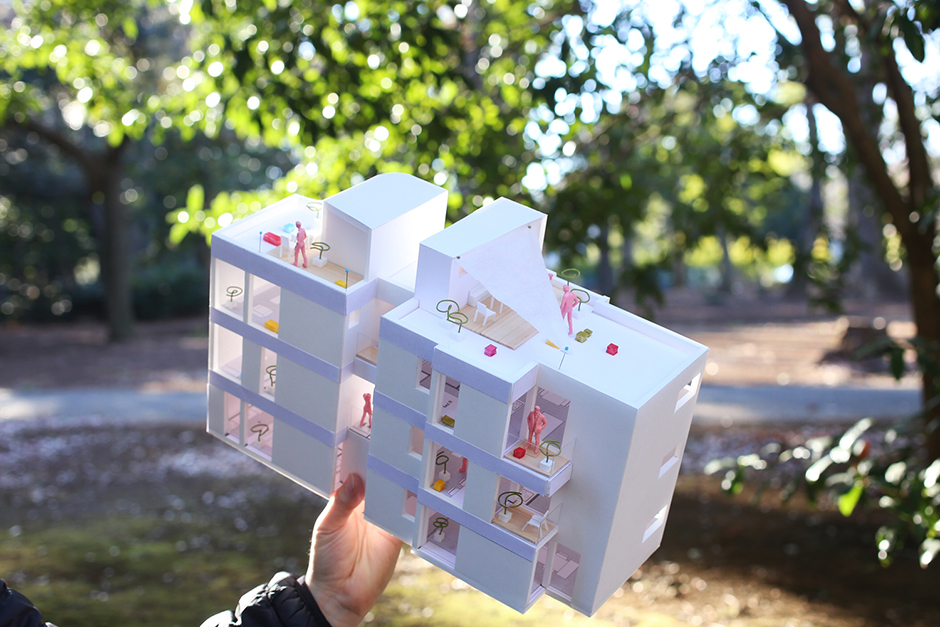 そんな根津らしいデザインを検討するにあたり、「新しいもの」と「古いもの」というキーワードを軸に考えました。 具体的には、1950年代のブルータリズムを代表する、荒々しさを残したコンクリートを用いた彫塑的な要素に、現代のライフスタイルや趣向を合わせ、居心地のいい機能性を組み込んだスタイル、というものです。