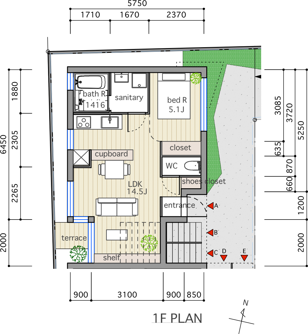 コンクリートで造る形状を活かしながら、マテリアルやテクスチャーを掛け合わせ、シンプルながらも深みのある建築を目指しています。